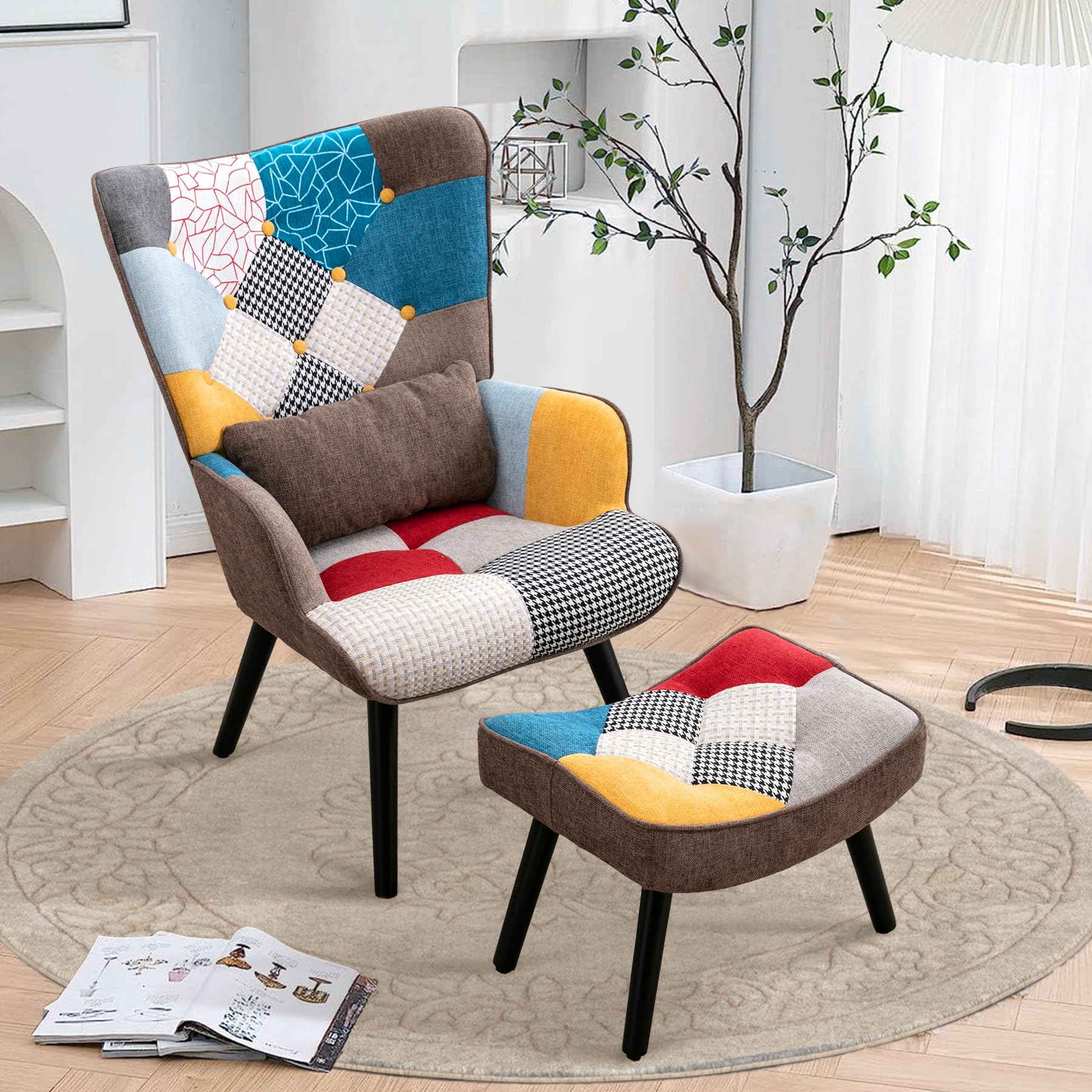 HomeMiYN Modern Patchwork Color Accent Chair with Ottoman Se...