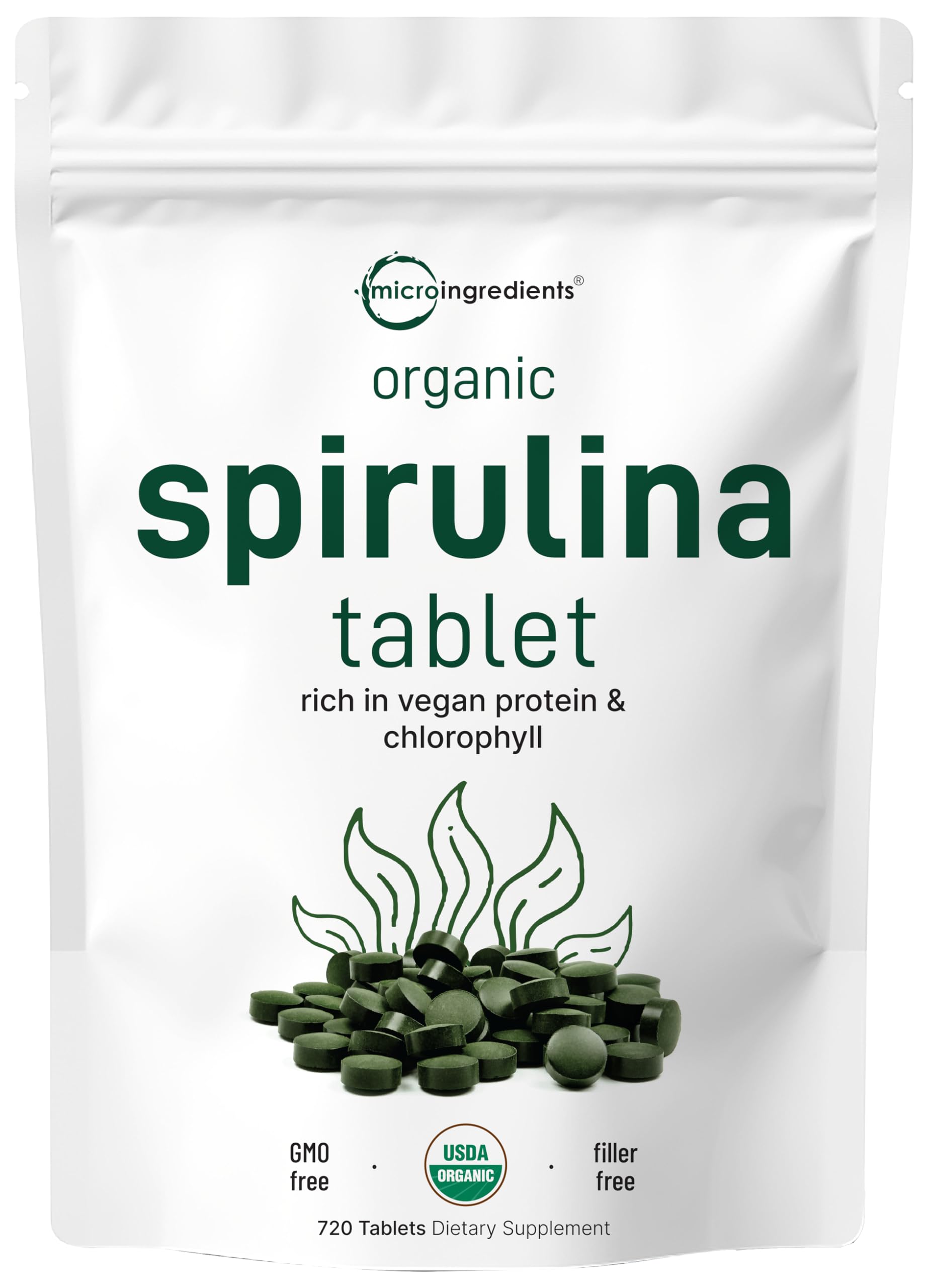 Organic Spirulina Supplement, 3000MG Per Serving, 720 Tablet...