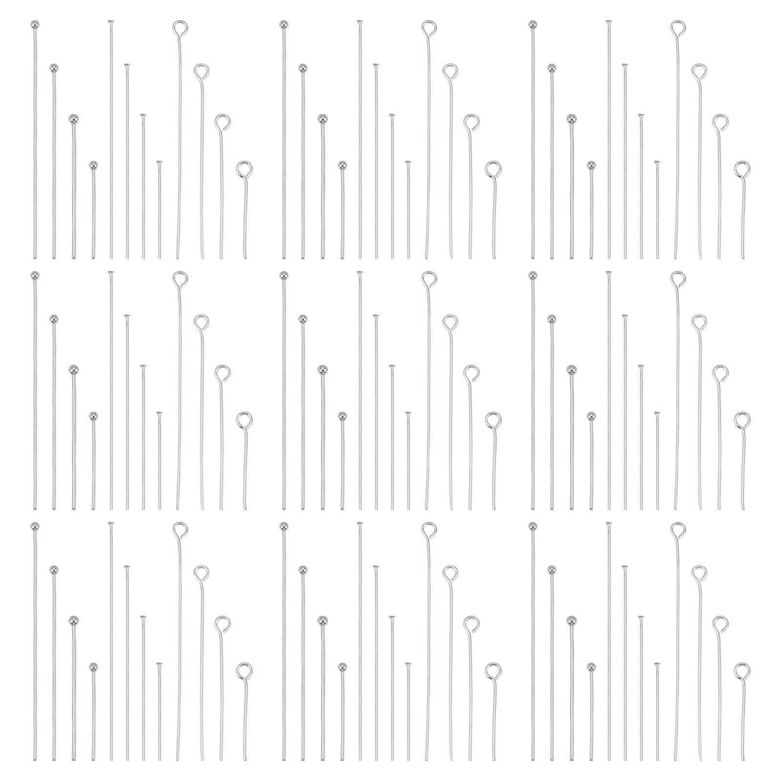 1200pcs 4 Sizes Ball Head Pins Eye Pins Flat Head Pins 304 S...