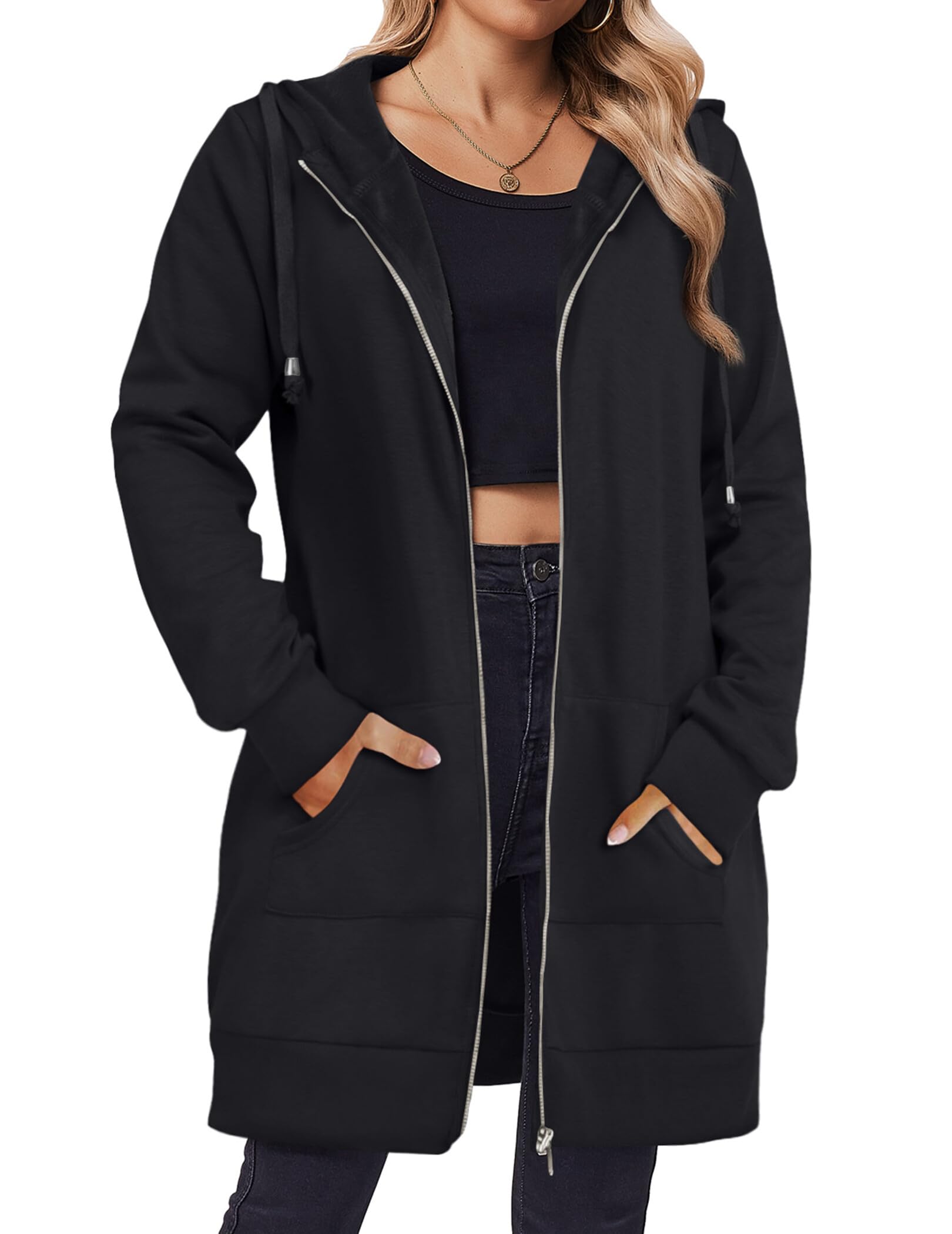 Women's Fall Jacket 2025 Zip Up Hoodies Long Sleeve Long Tun...