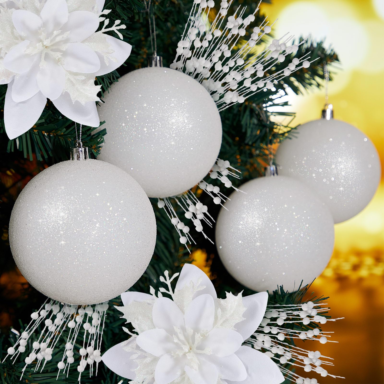 Vertintong 36 Pcs White Christmas Tree Ornaments 12 Large Gl...