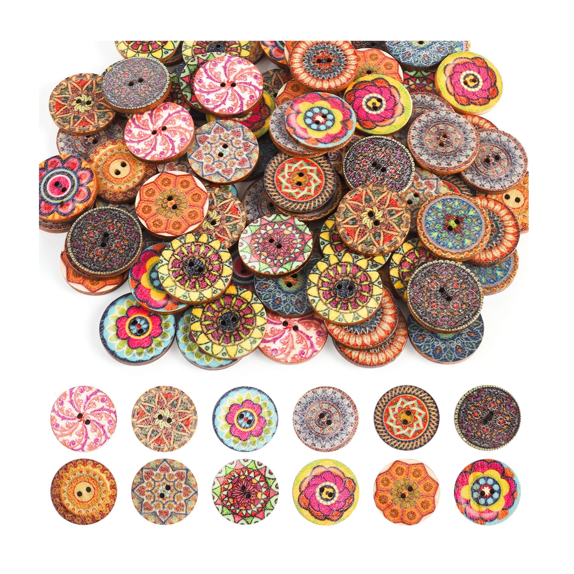 100 Pcs Mixed Color Buttons, 20mm/0.78inch Round Shapes Butt...