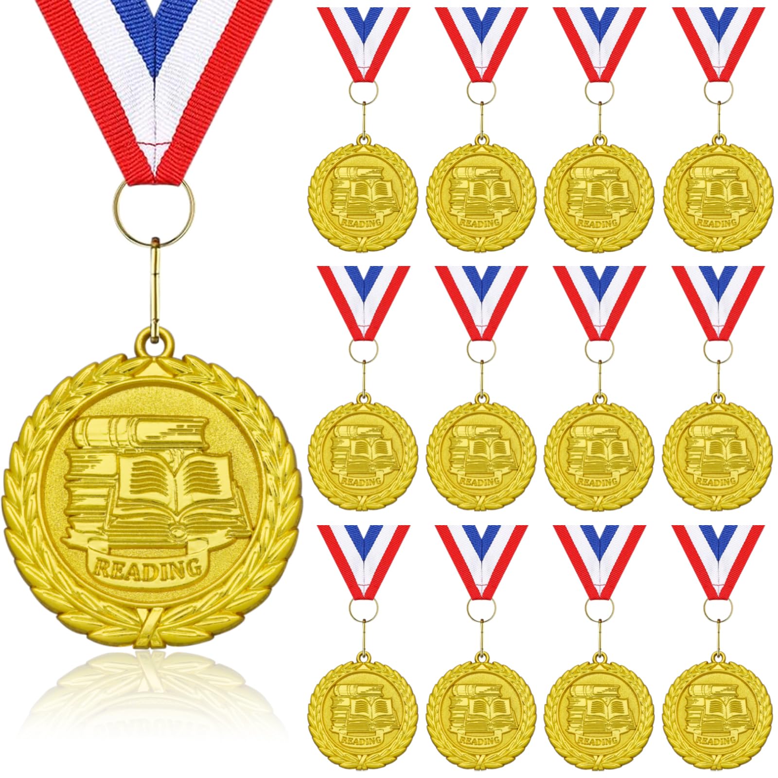 12 Pcs Reading Award Medals - 2 Inch Gold Metal Medal with V...