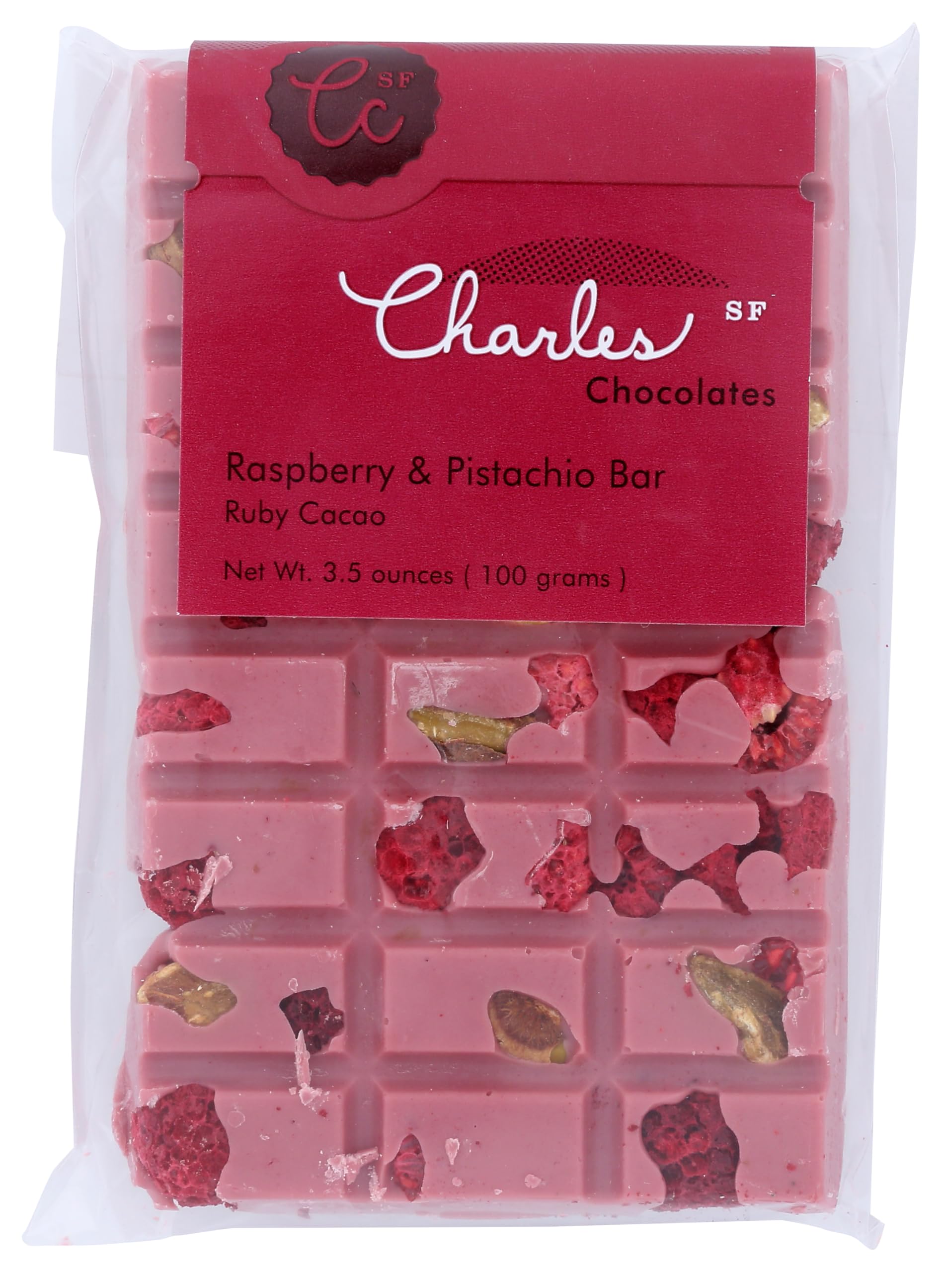 Charles Chocolates Raspberry Pistachio Ruby Chocolate Bar, 3...