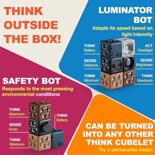 - Each robot cube falls into one of three categories: SENSE, THINK and ACT. Connect three or more Cubelets robot blocks from each category to create a programmable robot. Kids can also change their Cubelets programming with our Personality Swap function, available in the Cubelets app or from the dashboard