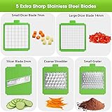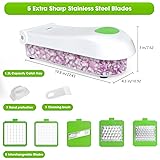 Ergonomic Design: Ergonomic Design Premium Manual Salad Chopper. The Blades Allows Flexibility To Easily Cut, Slice, Dice, Chop Fruits & Vegetables In Shapes & Sizes For Minimum Time. High Quality: The Vegetable Chopper Blades Is Made Of 301-Grade Stainless Steel. Onion Chopper Container Made From BPA-Free Professional Grade and Heavy Duty Reinforced Food Grade ABS with Non-Skid Rubber Base. Safe and Storable Design: The Manual Food Chopper Offers An Effective Hand Protector For Protecting Your Fingers From Accidental Nicks. All The Blades Can Store Inside The 1.2 L Vegetable Chopper Container After Using It. Keep Cleaning: The Food Chopper and Dicer Can Be Completely Disassembled For Easy Cleaning and Hand Wash with Cleaning Scrape, Also Can Be Used In Dishwasher. Practical and Convenient: The Onion Dicer Chopper Set Have 5 Interchangeable Blades. Easily and Consistently Chop A Wide Variety Of Veggies & Fruits e.g. Onion, Mushroom, Cucumber, Carrot, Potato, Tomato, Ginger, Garlic, Cheese & More.