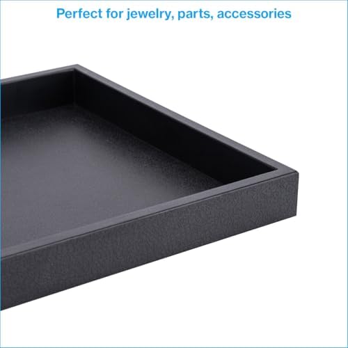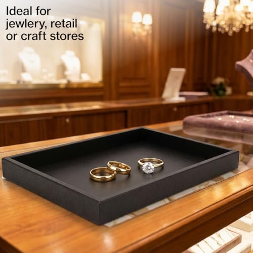 - Black Embossed “Leather Like” Finish- Versatile Display Tray: Our plastic display tray is ideal for showcasing a variety of items. This stackable jewelry tray is perfect for retail environments, neatly organizing rings, sunglasses, and other accessories.