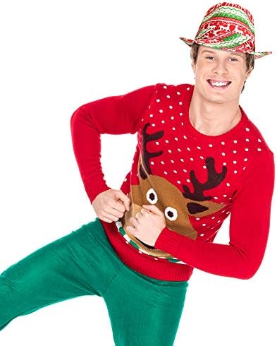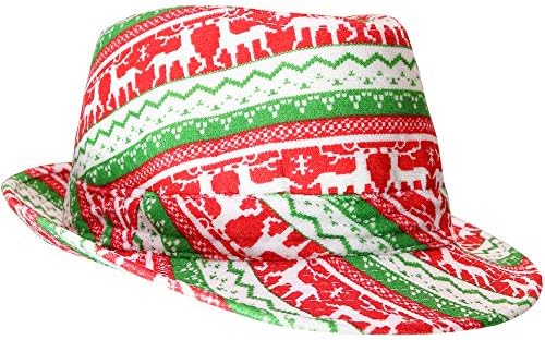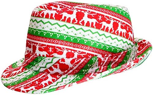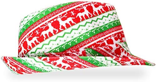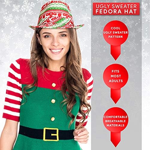 Skeleteen Ugly Sweater Fedora Hat - Funny Christmas Holiday Red and Green Ugly Sweater Party Hat for Adults and Kids