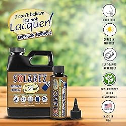 No Lacquer Thinner Smell, Cures In Minutes, Sands Incredible 100% Solids! Compare To Conventional Lacquer’s 27% Solids Content Green Technology: Zero VOC, Non-Flammable, Low Carbon Footprint. Brush On Finish Comparable To Nitrocellulose Lacquer, However Cures In Minutes Compared To Weeks. Made in the USA