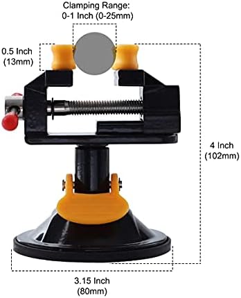 - 360 Degree Rotation: Mini table vise with suction base for 360 degree rotation. Clamping range: 0-1 Inch (0-25 mm). Suitable for round, square and irregular objects