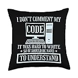 100% Polyester This funny programmer coding design reads i don't comment code it was hard to write so it should be hard to understand. The computer science software & web developer design. 100% spun-polyester fabric Double-sided print Filled with 100% polyester and sewn closed Individually cut and sewn by hand Spot clean/dry clean only