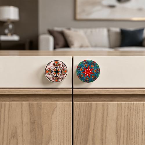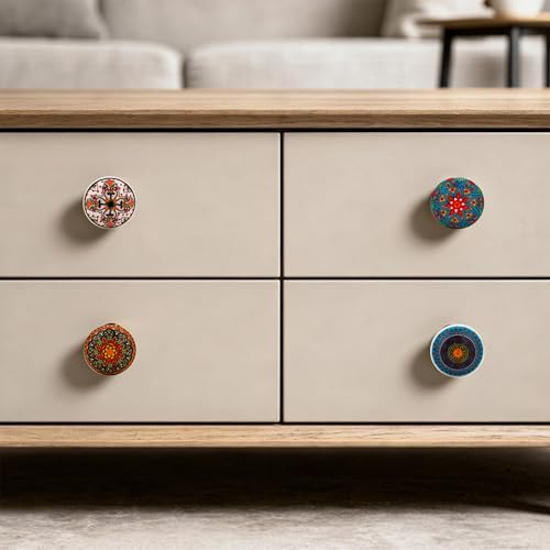 Craft Trade Ceramic Cabinet Knobs – Boho Kitchen Knobs and Pulls for Cabinets, Drawers, Dresser, Closet, Furniture & Wardrobe - Vintage Decorative Door Pulls for Home Decor - Multicolor, Set of 10