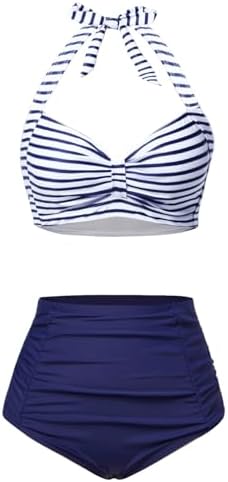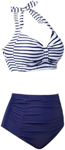 Holipick Women High Waisted Bikini Set Two Piece Swimsuit Tummy Control Bathing Suit Vintage Halter Swimwear