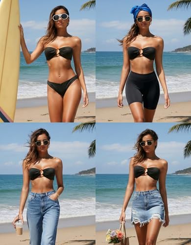 Holipick Bandeau Bikini Top for Women Strapless Swimsuit Tops Only Bathing Suit Tops with Shoulder Straps