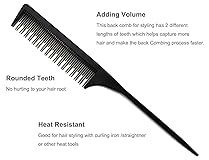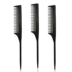 - Special Features A.Durable: The styling comb is make from carbon, which make carbon fiber comb be durable, not soft bendable. B.Heat-resistant:Heat resistant up to 150℃, perfect for styling with hot styling tool, like curling iron, straightner, dryer and so on. C.Anti-static: Getting away from “Fly Hair” or any damage of your hair. D.Smooth Surface: Comfortable and smooth hand feel. E.Professional: Best for hairstyling, parting hair, back combing, hair coloring and post styling hair. Specification: Color: Black Pakage: 3 pcs Size: 23 x 2.8 x 0.5 cm/ 9 x 1.1 x 0.2 inch (L x W x H)