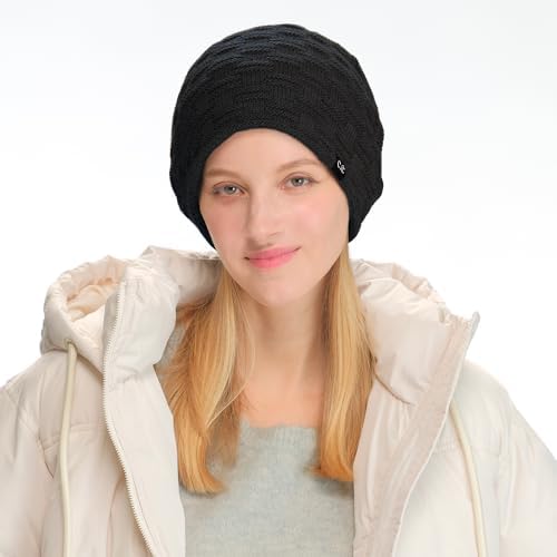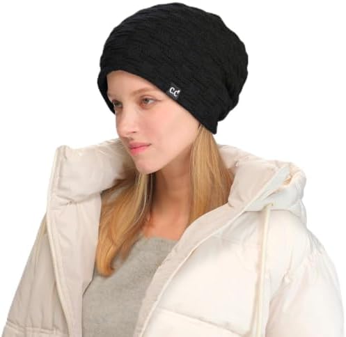 C.C Fuzzy Lined Beanie, Thick Soft Knit Winter Hat, Warm Cozy Skull Cap for Women & Men