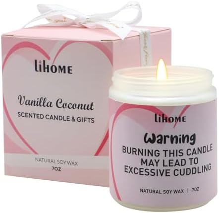 Lihome Gifts for Her, Candles Gifts for Girlfriend Wife, Funny Valentines, Anniversary Wedding, Birthday, Christmas Gifts, Vanilla Coconut Candles(7oz), WhiteCandle-Valentines01