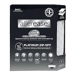 - From the #1 selling allergy bedding brand, the AllerEase Platinum Zip-Off Mattress Protector combines premium comfort, protection, and convenience to create the most comprehensive allergy solution on the market. Platinum completely covers your mattress to block 99.9% of allergens that can trigger an adverse reaction. Installing Platinum is easy, and washing it is even easier. Its construction features a fully removable top that zips on and off, allowing you to launder in hot water to reduce surface allergens, dirt, and dust. Top: The luxurious, plush top fabric features temperature-balancing technology that continuously adjusts to your body temperature, keeping you comfortable throughout the night. Platinum’s waterproof layer protects your mattress against damage. Base: Platinum’s base features FlexFit corner elastic that ensures the protector’s snug fit on a variety of mattress depths—twin and full up to 14” and queen, king, and California king up to 17”. It even includes elastic anchor bands that wrap around the top corners of your mattress to keep it in place, securing the product to your bed. The days of your mattress protector sliding around are over! This product is perfect for those who want total allergy protection, ease of use and cleaning, and premium comfort. All AllerEase products come with our Lifetime Warranty, for peace of mind that you’ve made a clean, healthy choice for you and your family!