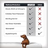 360 DEGREE ZIPPER: on the top of the encasement allows for easy installation and removal of the top while anchor bands hold the encasement to the mattress when the top is removed. LUXURIOUS PLUSH TOP: Deluxe circular knit fabric delivers superior comfort. TEMPERATURE BALANCING: Wicks moisture when you’re hot and insulates you when you’re cold. WATERPROOF: Soft, quiet top fabric is backed by a waterproof layer, protecting your mattress from unexpected spills & stains. BED BUG BARRIER: Specially designed seams and zippered closure prevents bed bugs from penetrating the mattress protector and collecting in your mattress.