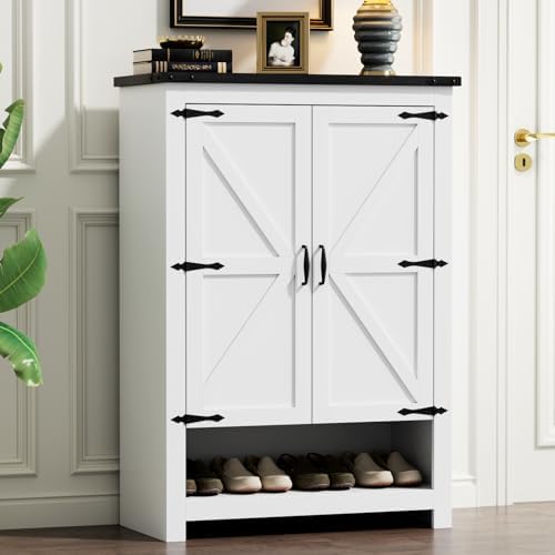 - 【Why Loomie Shoe Cabinet】Embrace the charm of country living with Loomie Farmhouse Shoe Cabinet, a perfect blend of style and utility. Crafted to bring a touch of rustic elegance to your home, this cabinet boasts a classic barn door design with modern functionality. It features a sturdy construction with a crisp white finish that is both sleek and easy to clean, while the white accents add a timeless allure. Whether you're looking to organize your entryway or add a decorative touch to your living space, our Farmhouse Shoe Cabinet is an favorite that marries the warmth of the countryside with the conveniences of contemporary living.