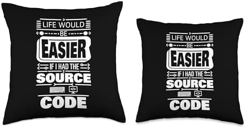 Life Easier Source Code, Funny Geek Computer Coder Programer Throw Pillow