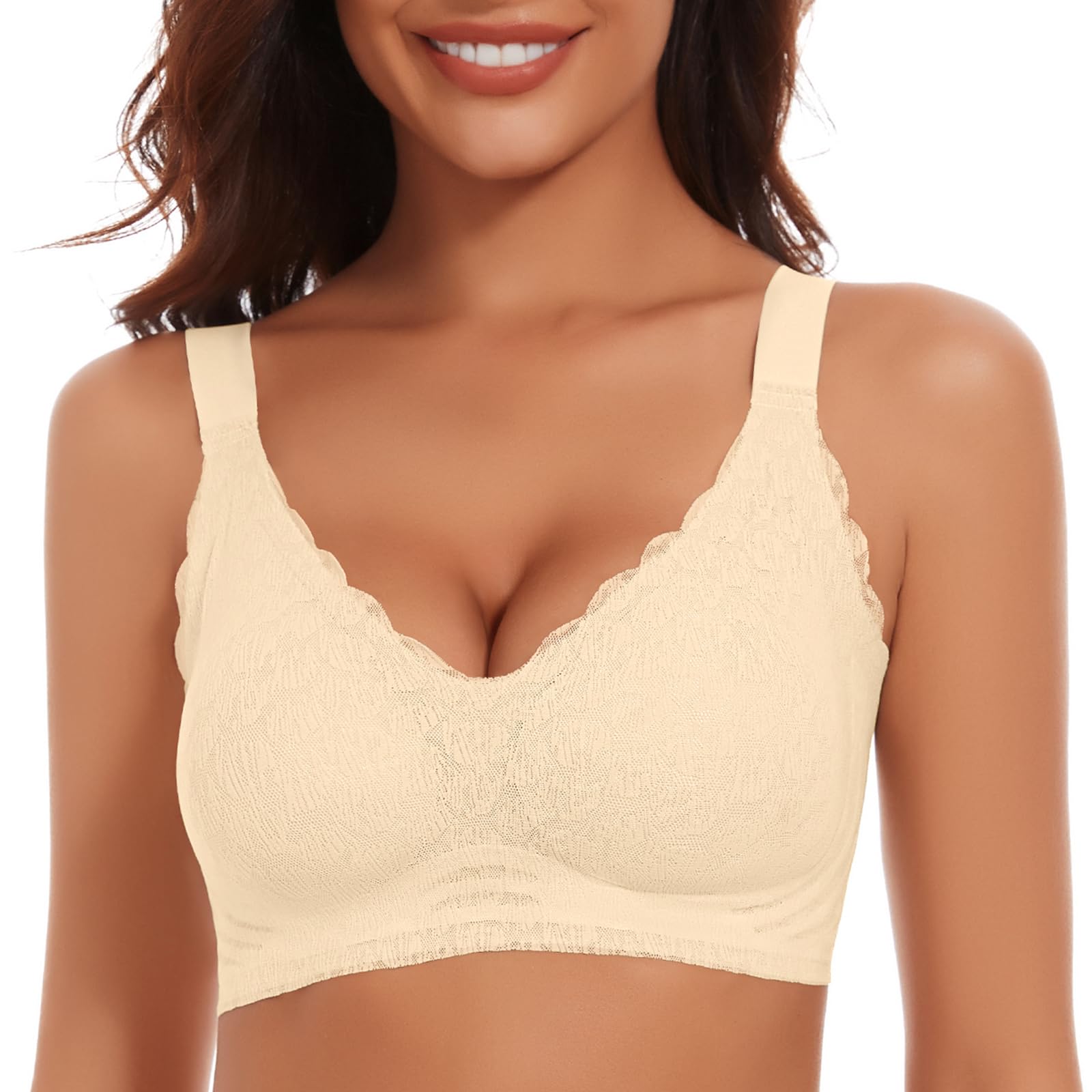 Wireless Lace Bras for Women Scalloped No Underwire Push Up ...