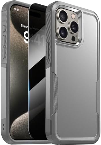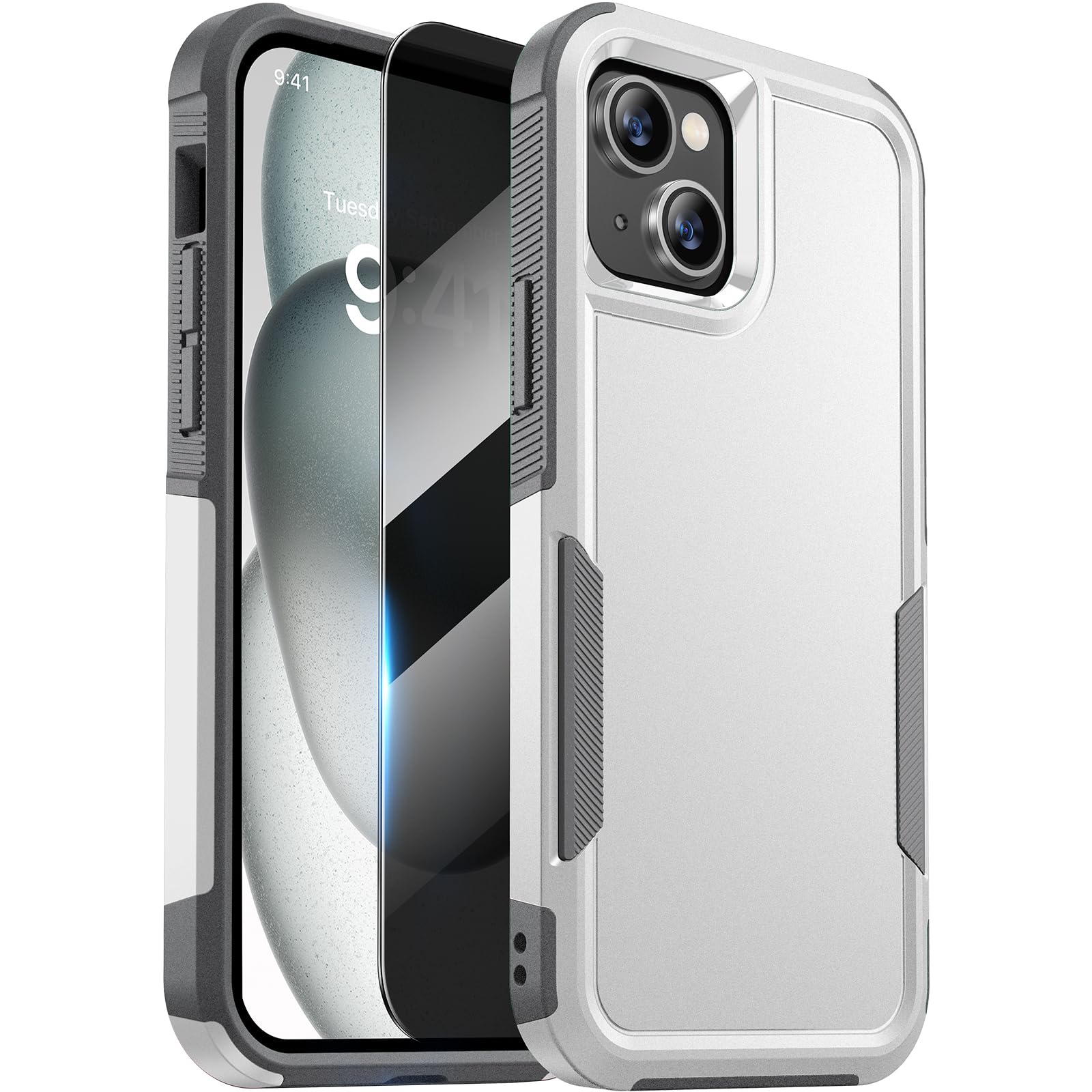 【4-in-1 360°Full Protection】 Case for iPhone 15 Pro with 9H Privacy Tempered Glass Screen Protector can protect your phone screen from scratch and broken. 2-Layer structure (the flexible rubber inner cover and hard PC back cover) provides 360 degree full body rugged protection.