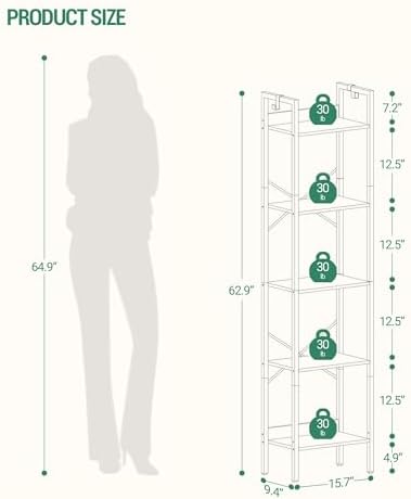 9.4"D x 15.7"W x 63"H
