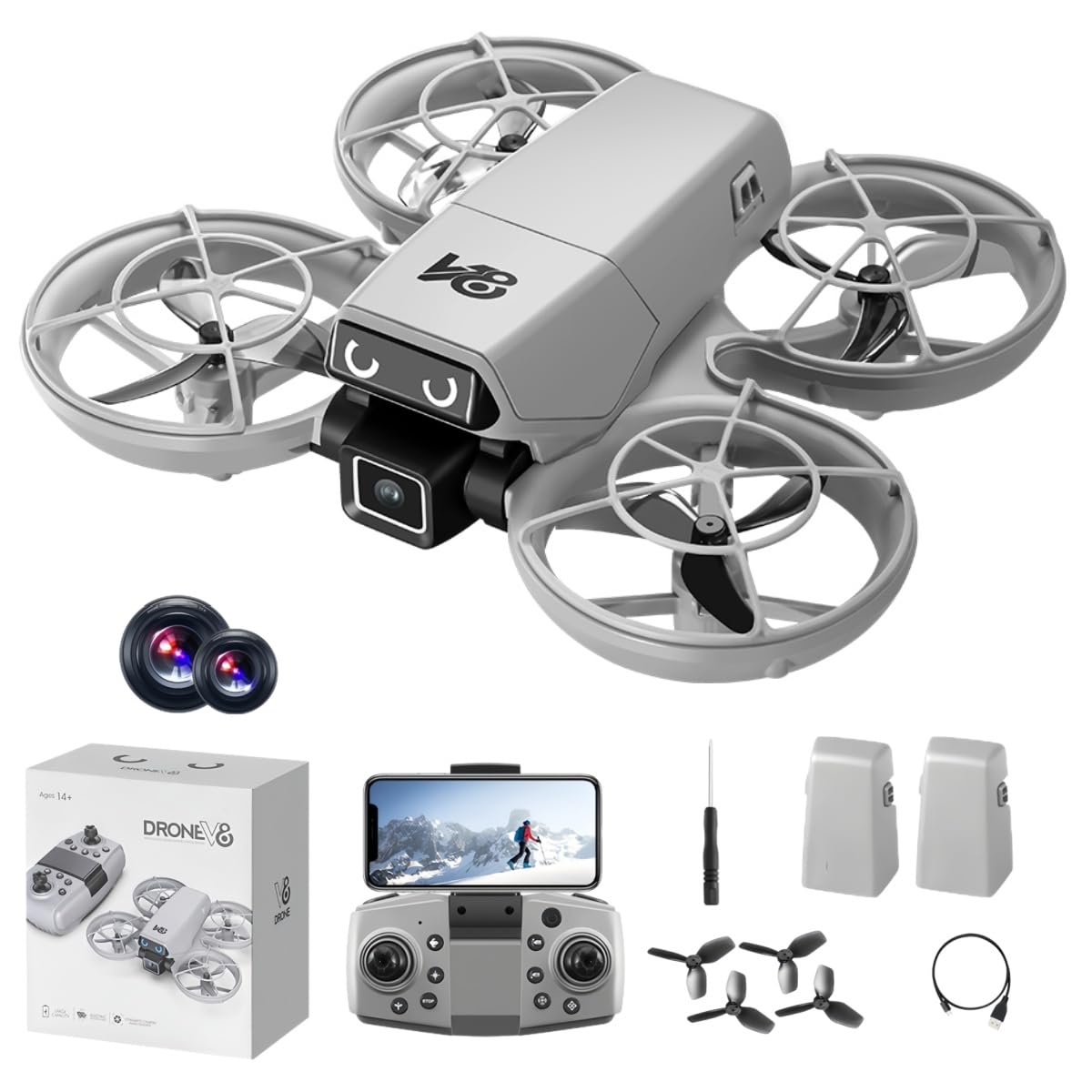 Drones with 4k Ultra-wide Camera,Real-time Vision Screen Handle,Foldable WiFi FPV Drone,RC Quadcopter with Brushless Motor,2 Batteries