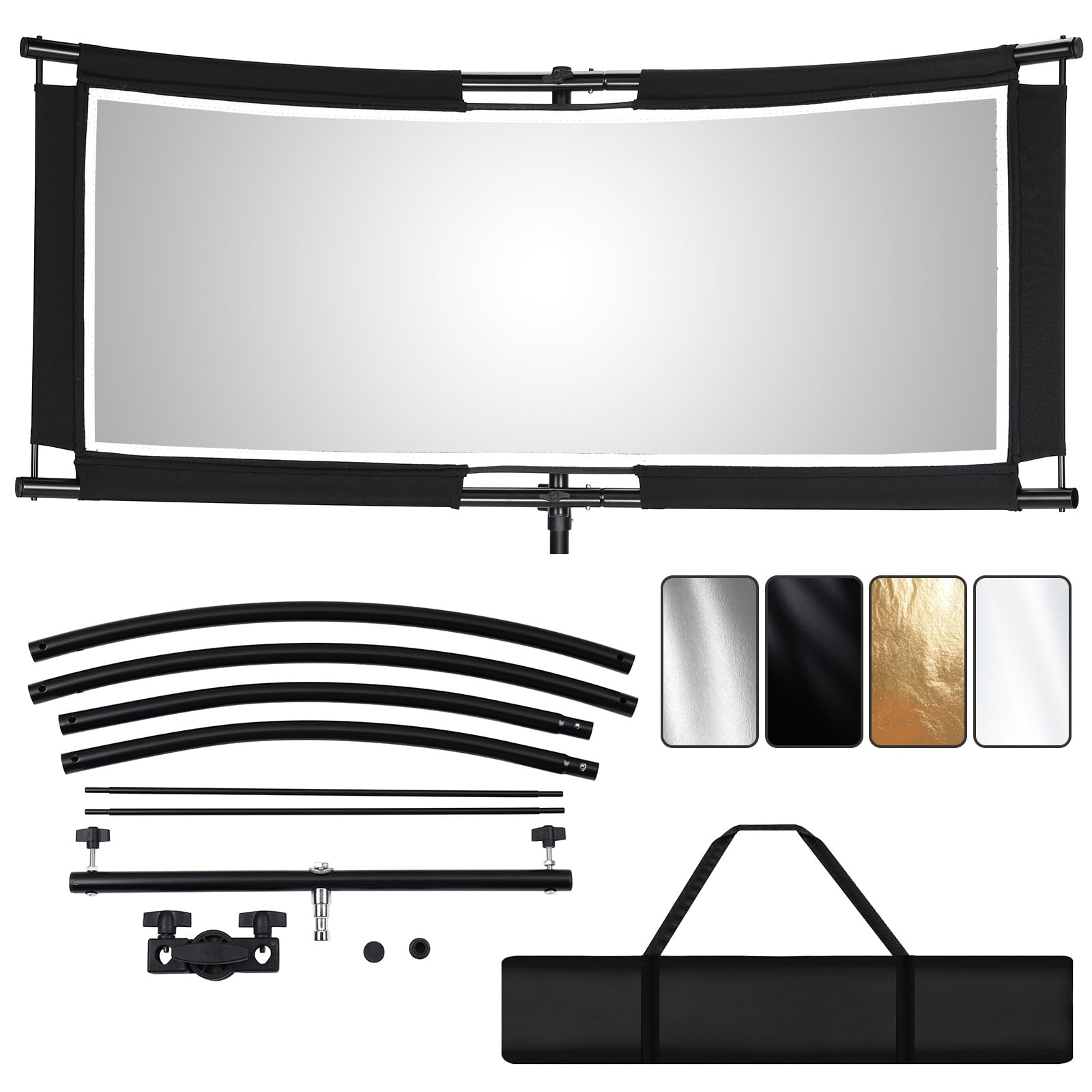 Clamshell Light Reflector/Diffuser with Carrying Case,70"X24" (4 Color in 1) Arclight Curved Eyelighter Lighting Diffuser for Photography Portrait Studio Video Shooting,Black/White/Gold/Silver
