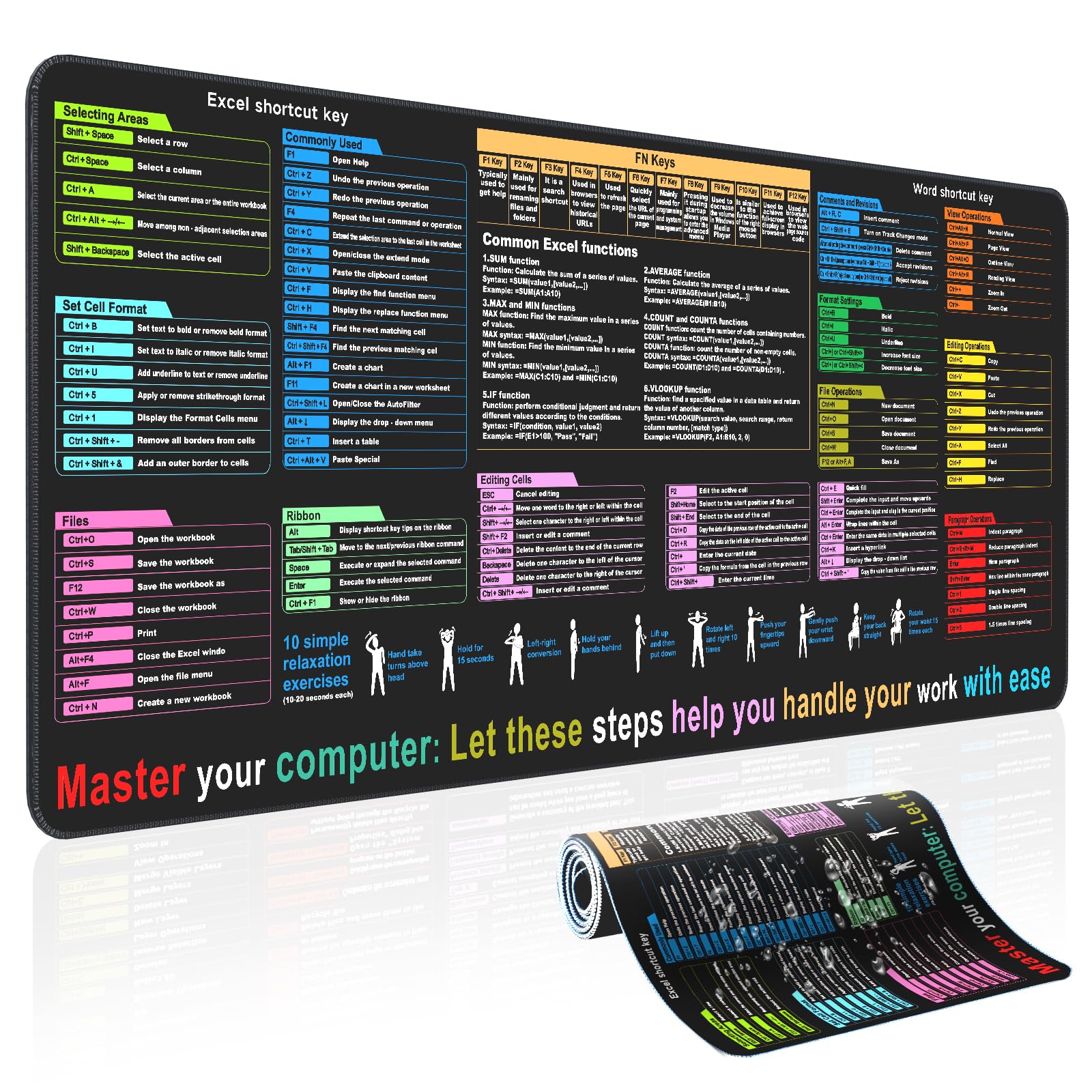- Thoughtful Gift Idea: Looking for the perfect gift? Our Excel shortcut mat is an ideal choice for colleagues, friends, or family. It makes a thoughtful addition to any workspace and serves as a great employee appreciation gift, promoting productivity and efficiency.
