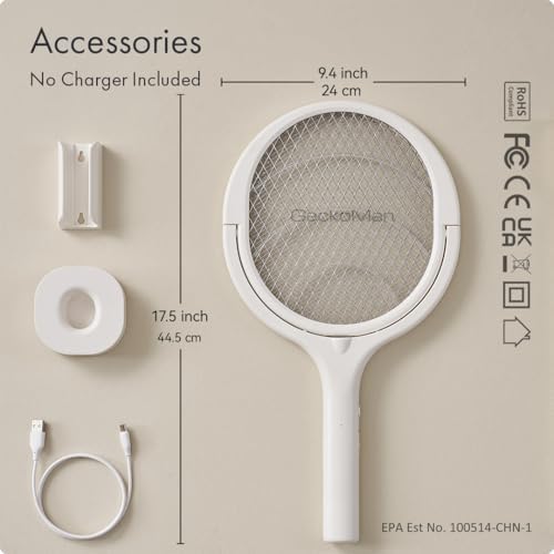 - GeckoMan Rotating Head Electric Fly Swatter Racket Rechargeable Bug Zapper Racket Bug Zapper Indoor Fly Zapper Mosquito Zapper Flies Killer for Indoors