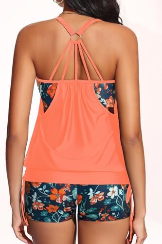 Holipick Blouson Tankini Swimsuits for Women - Two Piece Tummy Control Bathing Suit with Shorts Modest Swimwear
