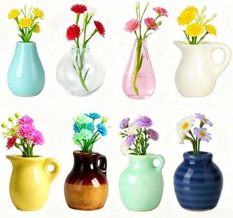 - Vase Magnets for Fridge: You get 8 mini ceramic vase magnets in different shapes and colors—The set even comes with bright, colorful fake flowers! Just pop the small flowers or tiny plants into the mini vase magnets and stick them on your fridge door for fun, adding a splash of color to your kitchen. This cute vase also serves as a playful accent for whiteboards or miniature scenes