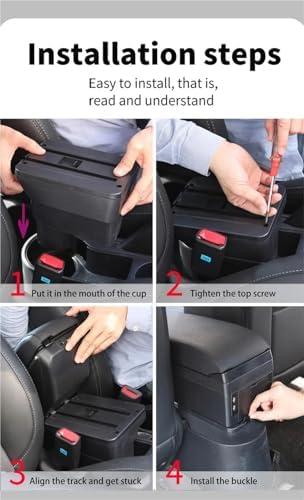 - Usage: Installation is as simple as inserting the base of the armrest box into the cup holder of the car's center console, and then fixing the armrest box to the base.