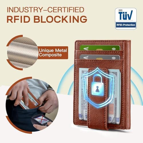 - RFID Anti-Theft SECURITY - This slim wallet for men equipped with German Instiute Certified RFID Security technology, a unique metal composite, engineered specifically to block 13.56 MHz or higher RFID signals to protect the valuable information and privacy