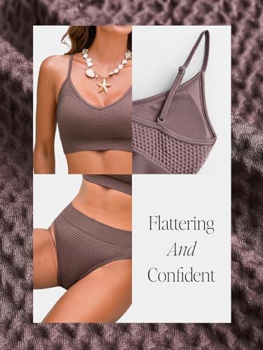 CUPSHE Women's Bikini Sets Two Piece Swimsuit Sporty Mid Rise Scoop Neck Adjustable Spaghetti Straps Textured Midkini