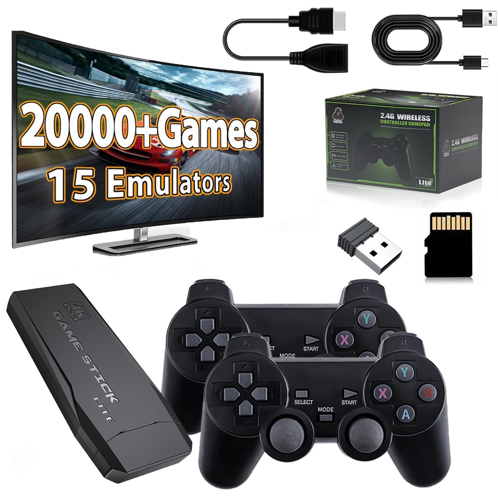 AMANKA Retro Game Console,Retro Games Stick Built-in 15 Emulators with 20,000+ Games,4k Hdmi Output Gaming Stick,Dual Wireless Controllers,Plug and Retro Play Video Games for Tv