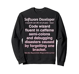 - Funny software developer design for coders who debug chaos, chase deadlines, and turn caffeine into code. Perfect for developers who laugh through bugs, fixes, and mysterious errors. Great gift for programmers, software engineers, and tech teams. Ideal for sprints, office fun, or anyone who jokes about late commits, endless debugging, and the roller-coaster life of coding. This Software Developer item is designed by Programmer Software Developers Gifts & Tees.
