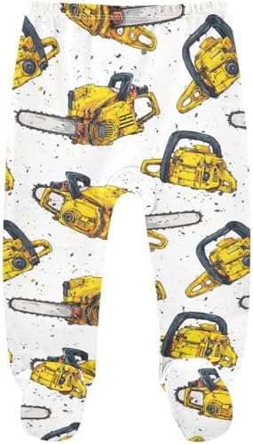 Pigsaly Boy Footed Pants Vintage Yellow Chainsaw Baby Girls Pants Cotton Newborn Leggings 3M