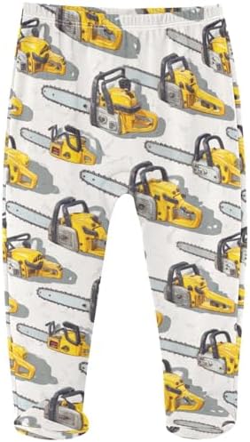 Pigsaly Boy Footed Pants Vintage Tool Yellow Chainsaw Baby Girls Pants Cotton Newborn Leggings 3M