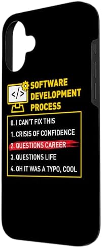 Great gift for the programmer, software developer, coder or anyone who loves funny coding jokes. Computer nerds & geeks know the Software Development Process: I can't fix this, crisis of confidence, questions career, questions life, oh it was a typo, cool