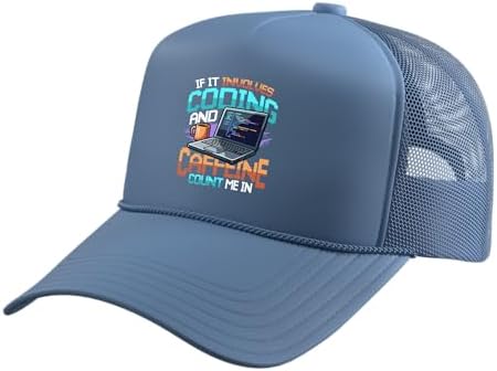 Programmer Humor Involves Coding and Caffeine Programming Trucker Hat with Adjustable Mesh Back