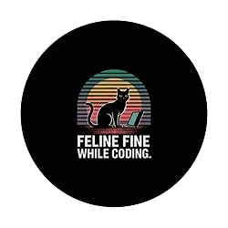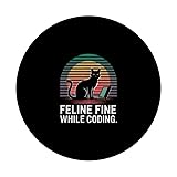 Feline Fine While Coding Programmer PopSockets Adhesive PopGrip
